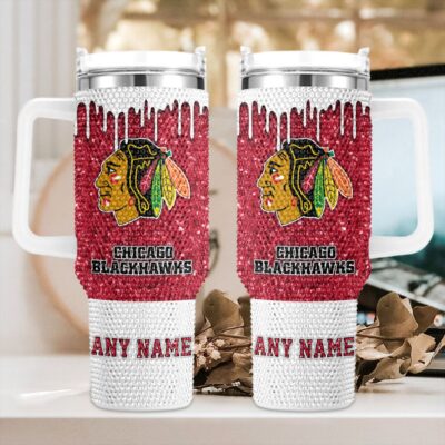 NHL Chicago Blackhawks Personalized Name Rhinestone Diamond 40oz Tumbler
