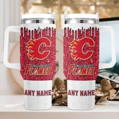 NHL Calgary Flames Personalized Name Rhinestone Diamond 40oz Tumbler