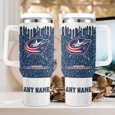 NHL Columbus Blue Jackets Personalized Name Rhinestone Diamond 40oz Tumbler