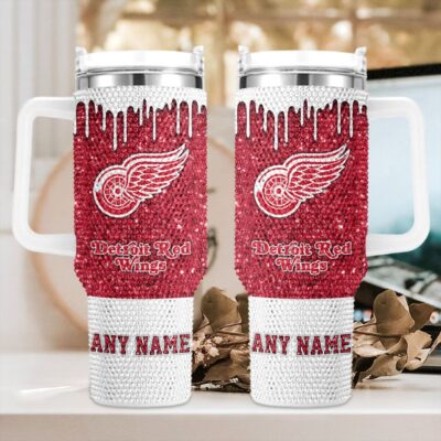 NHL Detroit Red Wings Personalized Name Rhinestone Diamond 40oz Tumbler