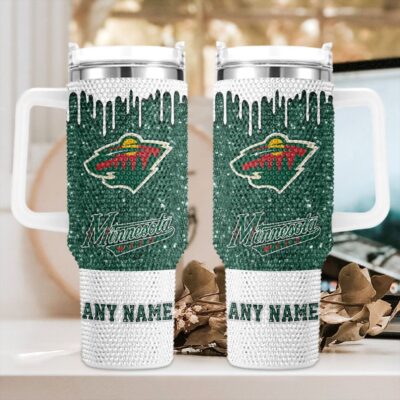 NHL Minnesota Wild Personalized Name Rhinestone Diamond 40oz Tumbler