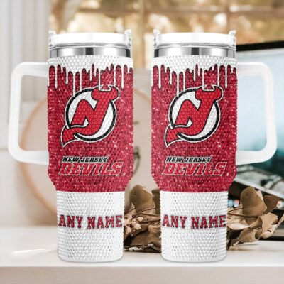 NHL New Jersey Devils Personalized Name Rhinestone Diamond 40oz Tumbler