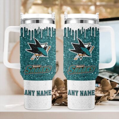 NHL San Jose Sharks Personalized Name Rhinestone Diamond 40oz Tumbler