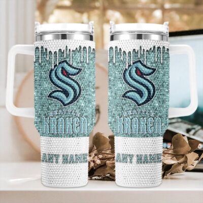 NHL Seattle Kraken Personalized Name Rhinestone Diamond 40oz Tumbler
