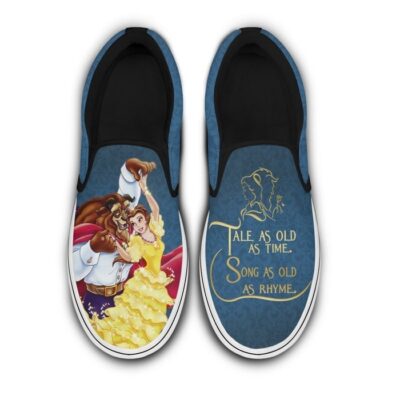 Beauty And The Beast Tale as Old as Time Blue Pattern Disney Graphic Cartoon Unisex Slip On Low Top Canvas Shoes