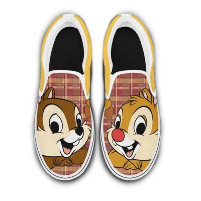 Chip and Dale Cartoon Movie Couple Brown Yellow Pattern Disney Graphic Cartoon Unisex Slip On Low Top Canvas Shoes