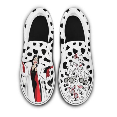 Cruella de Vil & 101 Dalmantian Dogs Patterns Disney Graphic Cartoon Unisex Slip On Low Top Canvas Shoes