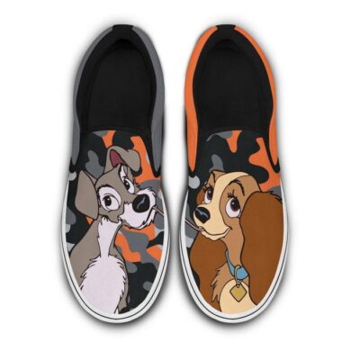 Lady and The Tramp Dog Couple Brown Gray Pattern Disney Graphic Cartoon Unisex Slip On Low Top Canvas Shoes