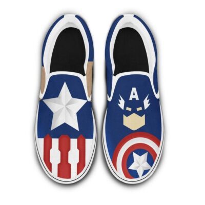 Marvel Captain America Blue Red White Bling Patterns Disney Graphic Cartoon Unisex Slip On Low Top Canvas Shoes