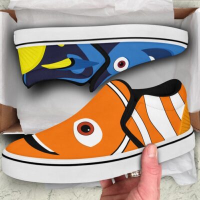Nemo and Dory Fish Blue Orange Pattern Disney Graphic Cartoon Unisex Slip On Low Top Canvas Shoes