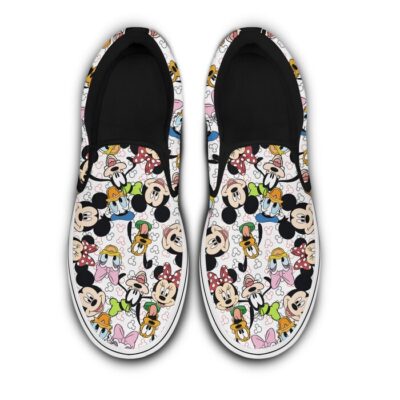 Mickey Minnie Chip N Dale Donald Daisy Patterns Disney Graphic Cartoon Unisex Slip On Low Top Canvas Shoes