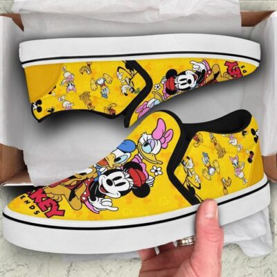 Mickey Mouse & Friends Yellow Patterns Disney Graphic Cartoon Unisex Slip On Low Top Canvas Shoes