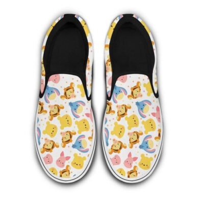 Winnie The Pooh & Friends Chibi Patterns Disney Graphic Cartoon Unisex Slip On Low Top Canvas Shoes