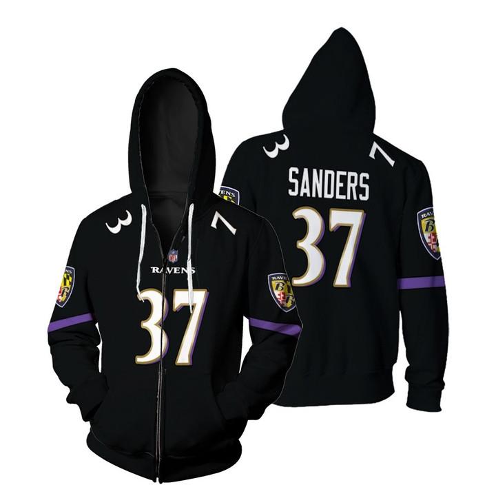 Baltimore Ravens Deion Sanders #37 Great Player NFL American Football Game Jersey Black 2019 3D Gift For Ravens Fans Zip Hoodie ZH00321