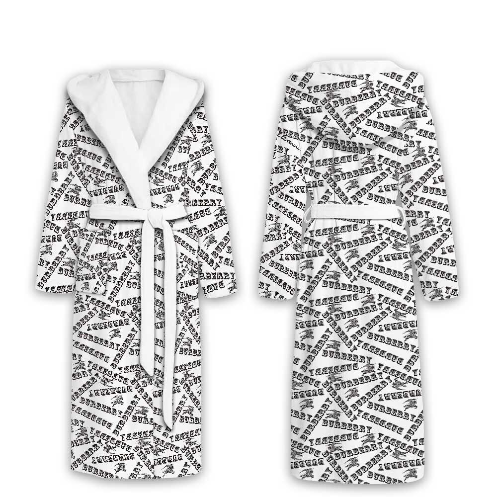 Burberry Black White Pattern Luxury Unisex Flannel Hooded Bathrobe