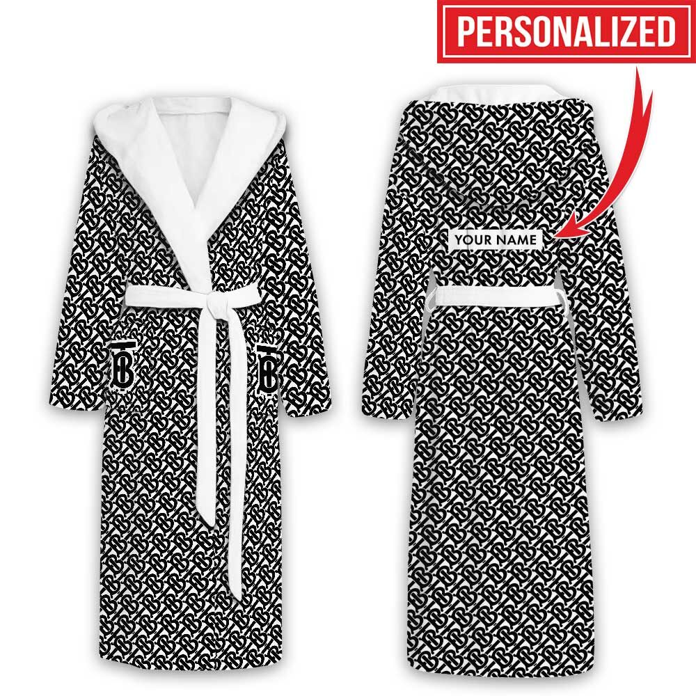 Burberry Logo Pattern Luxury Unisex Flannel Hooded Bathrobe