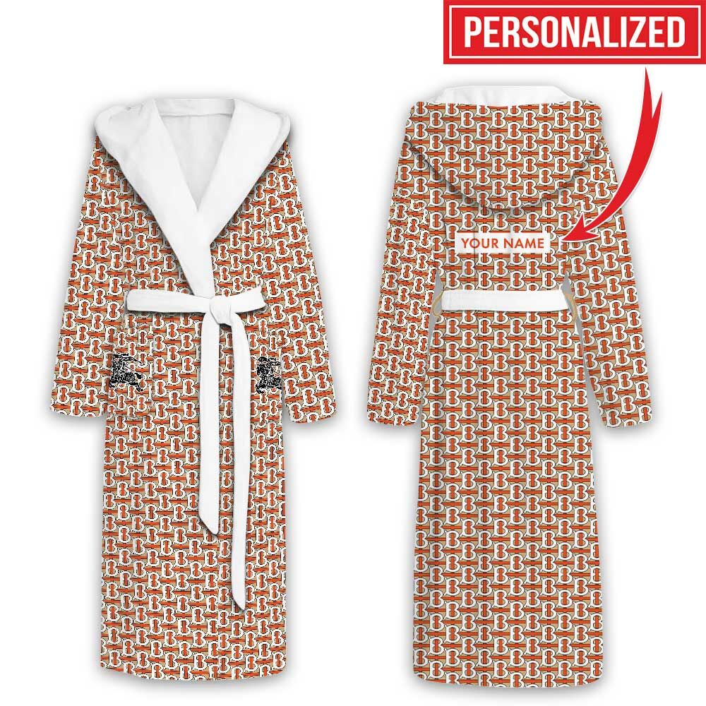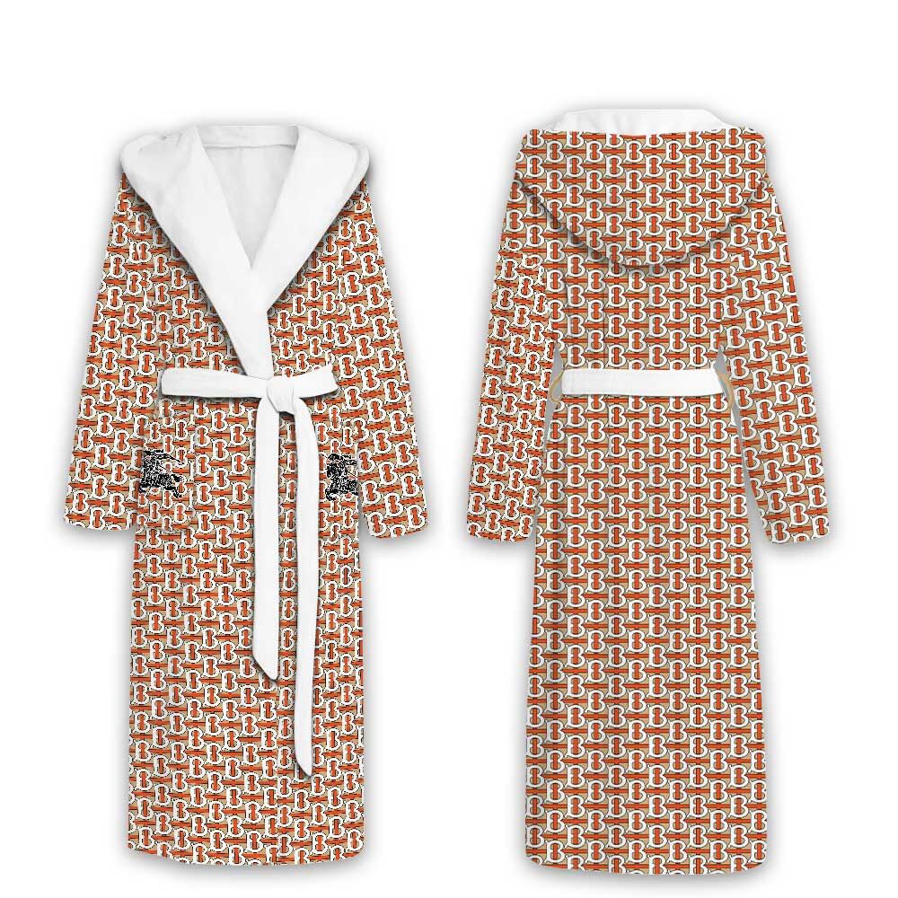 Burberry Orange BB Pattern Luxury Unisex Flannel Hooded Bathrobe