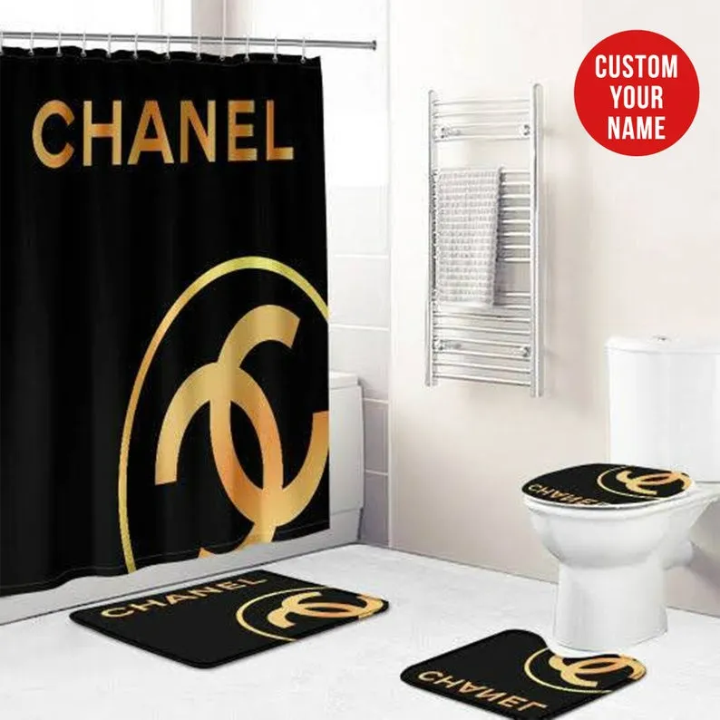 Chanel Shower Curtain Coco Black And Gold Gift Luxury Bathroom Set BRS813