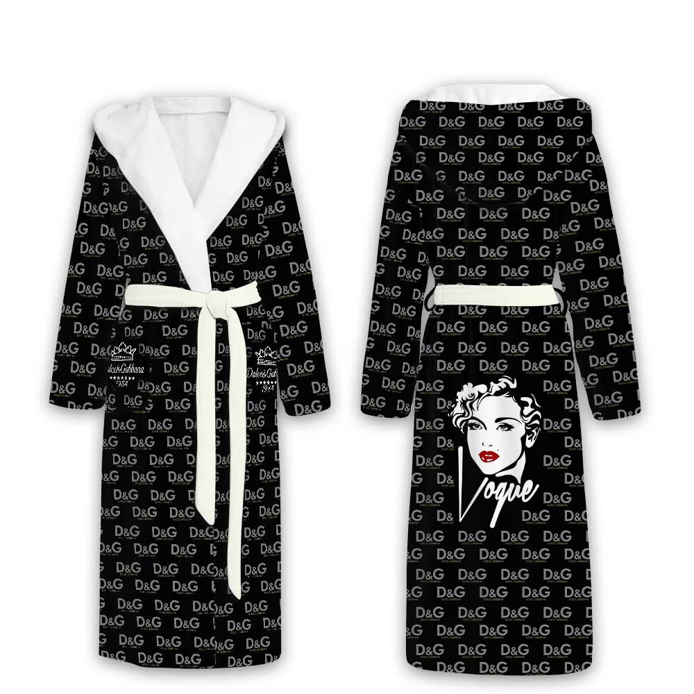 Dolce & Gabbana Black Pattern Madonna Luxury Unisex Flannel Hooded Bathrobe
