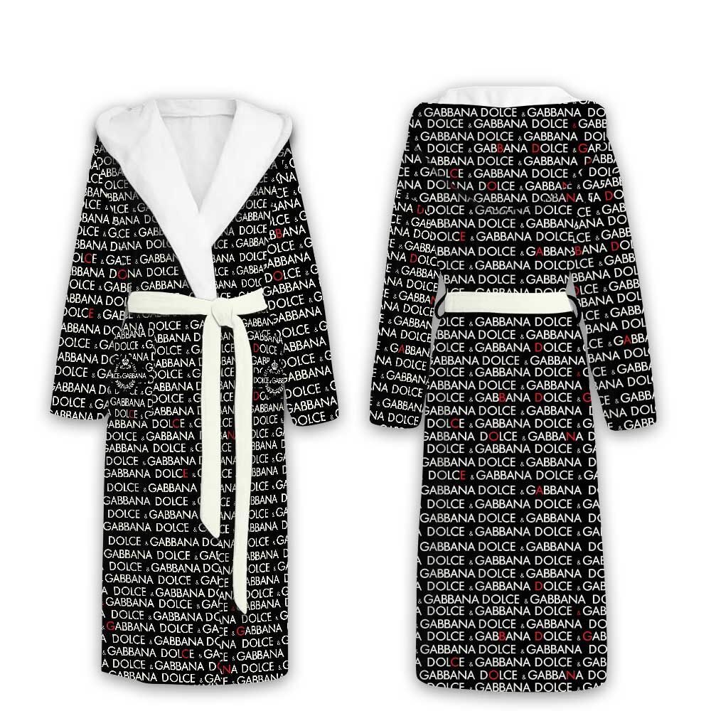 Dolce & Gabbana Red D&G Pattern Luxury Unisex Flannel Hooded Bathrobe