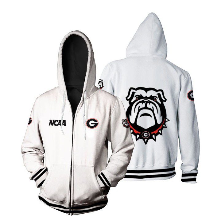 Georgia Bulldogs Ncaa Classic White With Mascot Logo Gift For Georgia Bulldogs Fans Zip Hoodie ZH00575