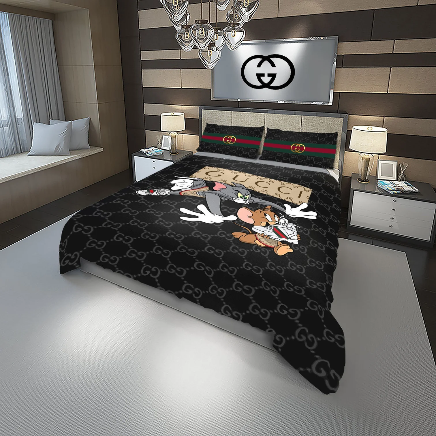 Gucci Tom And Jerrry Fashion Logo Luxury Brand Premium Bedding Set BS329