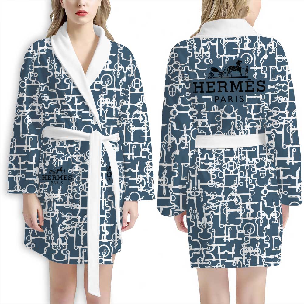 Hermes Blue Circle Pattern Luxury Bathrobe