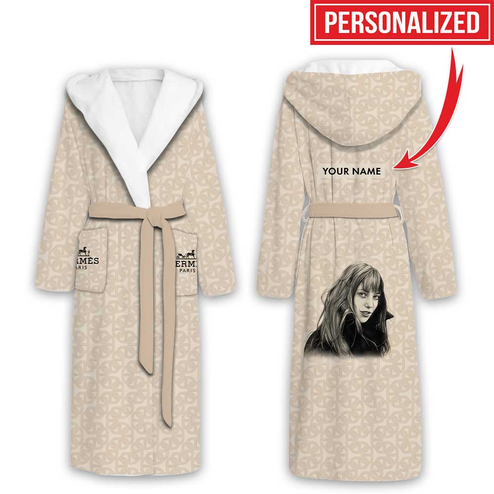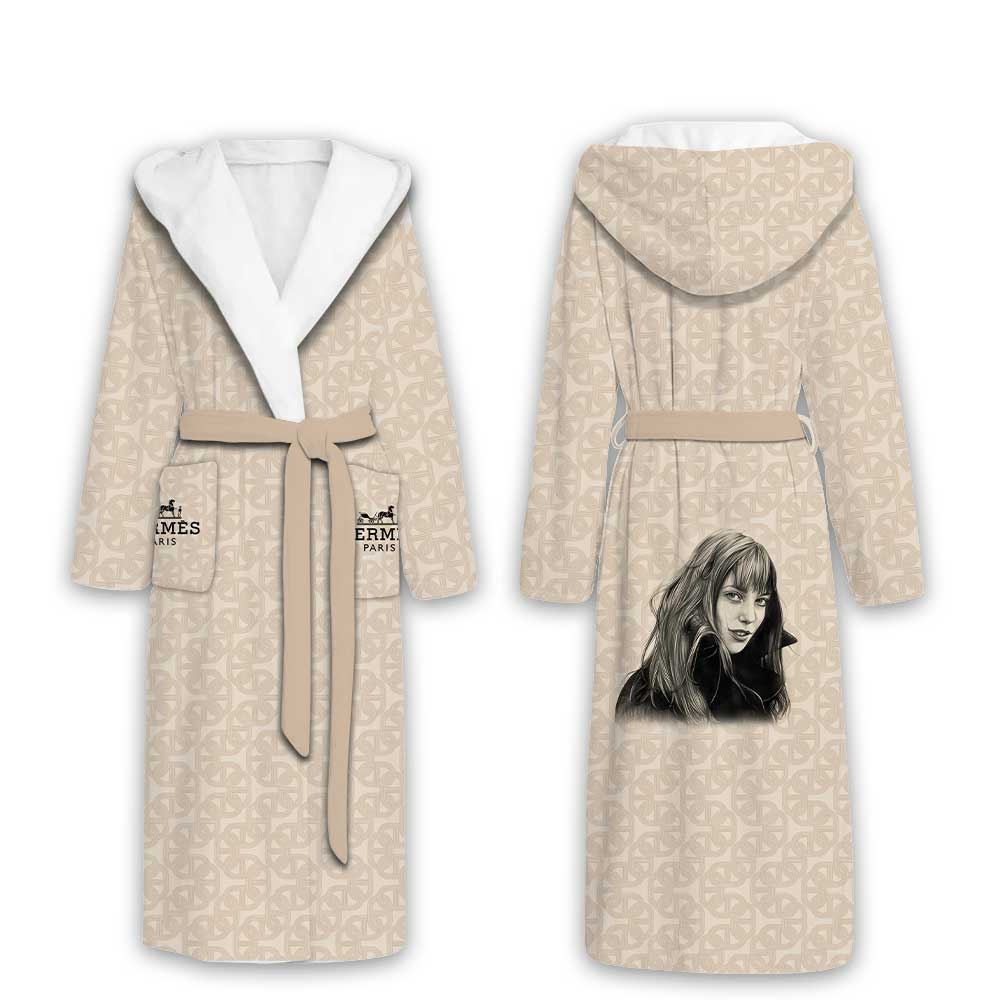 Hermes Pattern Jane Birkin Luxury Unisex Flannel Hooded Bathrobe
