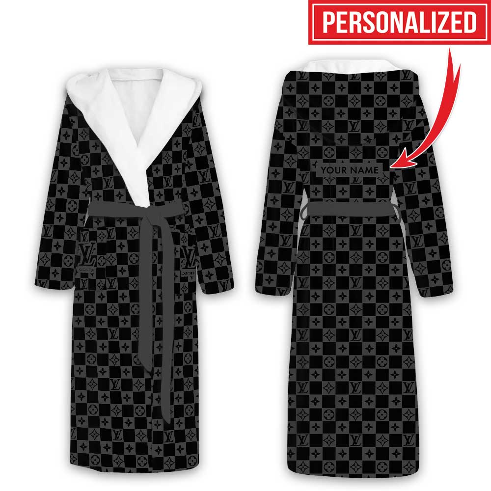 Louis Vuitton Black Checkered Pattern Luxury Unisex Flannel Hooded Bathrobe