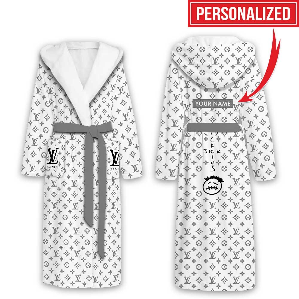 Louis Vuitton Black Pattern Travis Scott Luxury Unisex Flannel Hooded Bathrobe