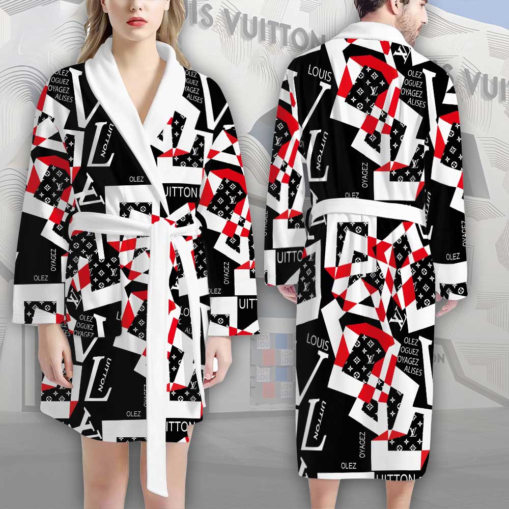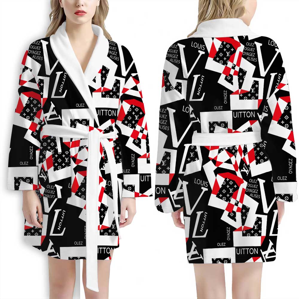 Louis Vuitton Black White Red Pattern Luxury Bathrobe