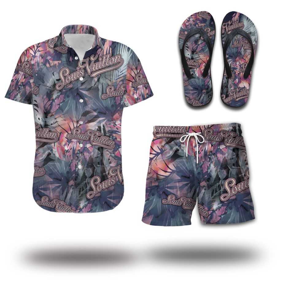 Louis Vuitton LV Flip Flops And Combo Hawaii Shirt Shorts Luxury Brand Summer Outfit HSF314