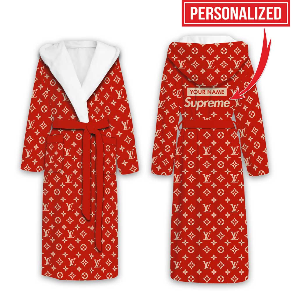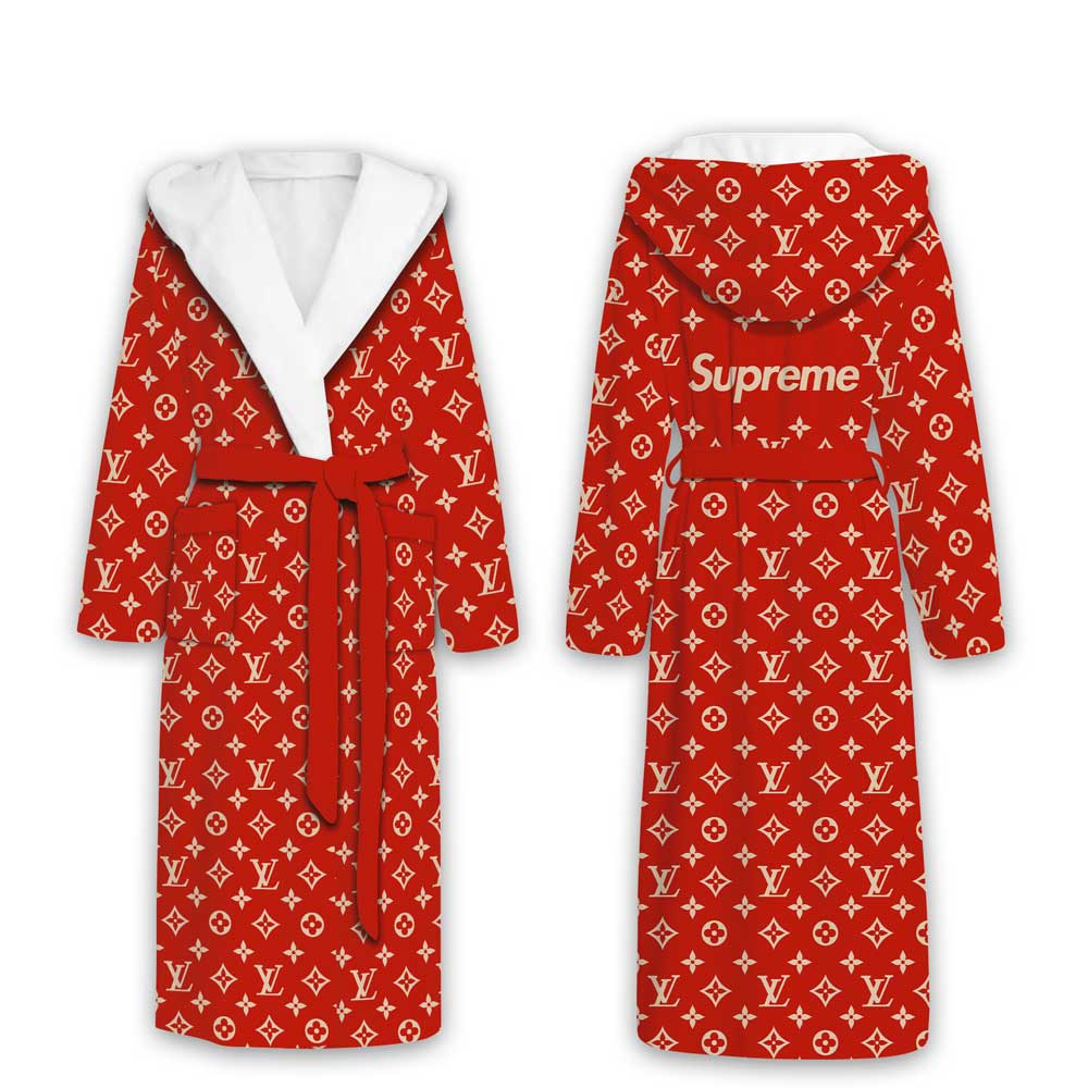 LV Monogram Supreme Red Luxury Hooded Bathrobe Collection For Winter