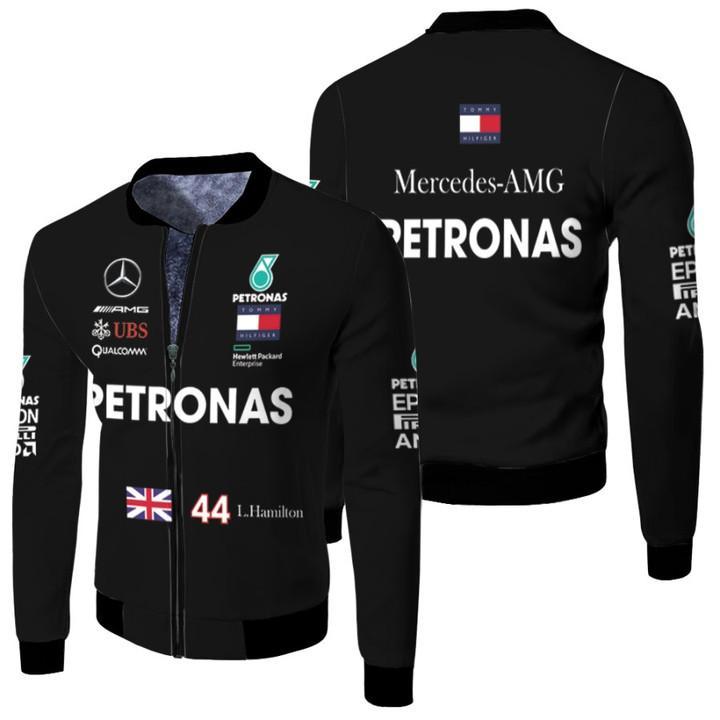 Petronas UBS Mercedes-AMG Lewis Hamilton 44 Racing Motorsport White Designed Gift For Hamilton Fans Fleece Bomber Jacket