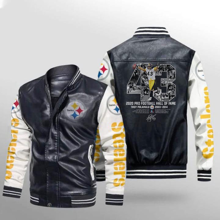 Pittsburgh Steelers Troy Polamalu 2020 Pro Football Hall Of Fame Signature 2003 2014 Gift For Steelers Fans Leather Bomber Jacket LBJ0104