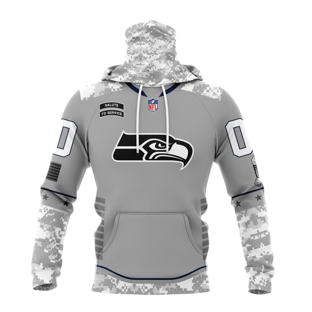 Seattle Seahawks NFL Specialized Design Camo 2024 Salute To Service Club Personalized Letters Number Gaiter Hoodie WGH2028