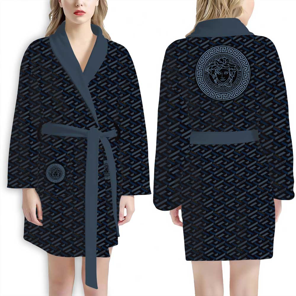 Versace Blue Manifesto Pattern Luxury Bathrobe