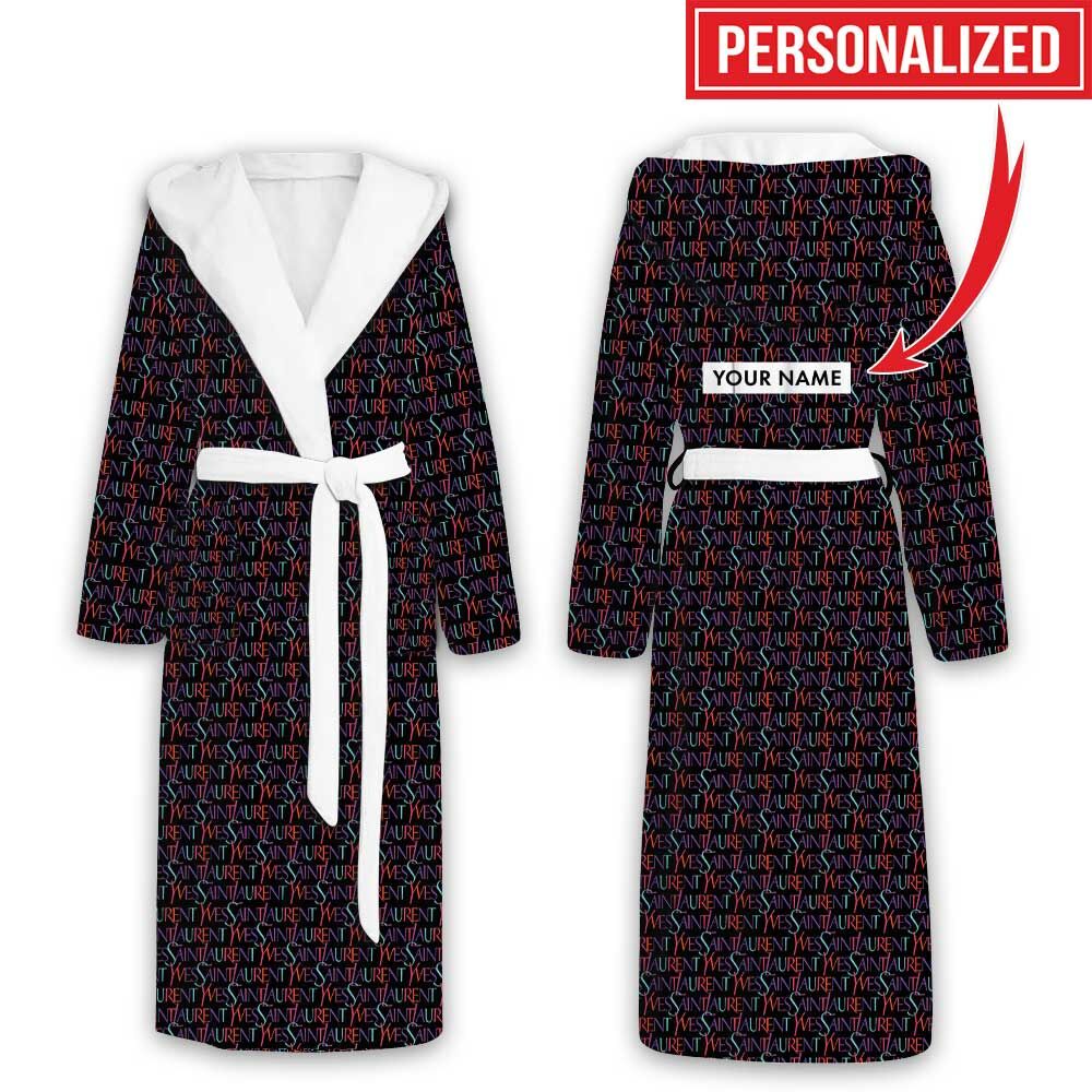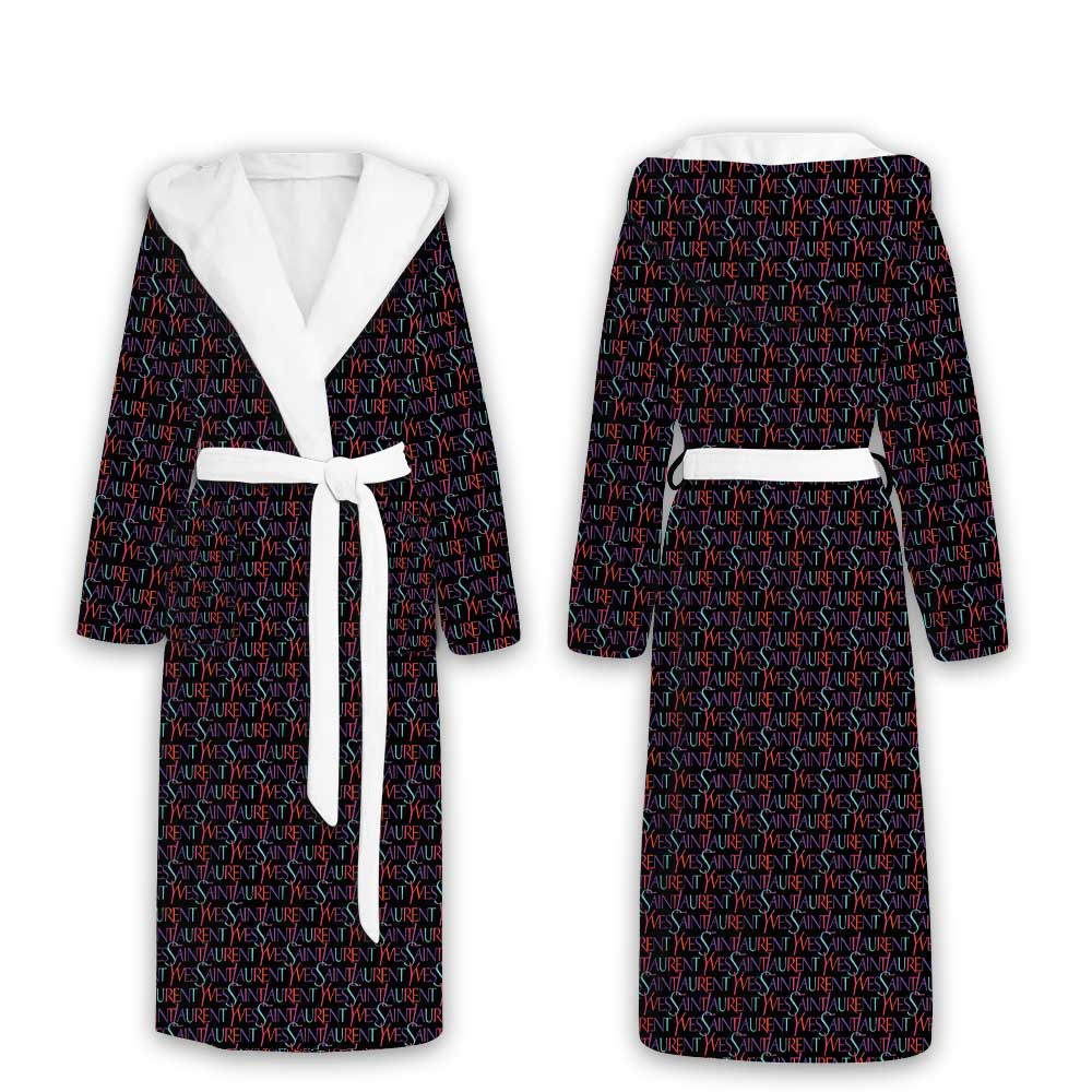 Yves Saint Laurent Color YSL Pattern Luxury Unisex Flannel Hooded Bathrobe