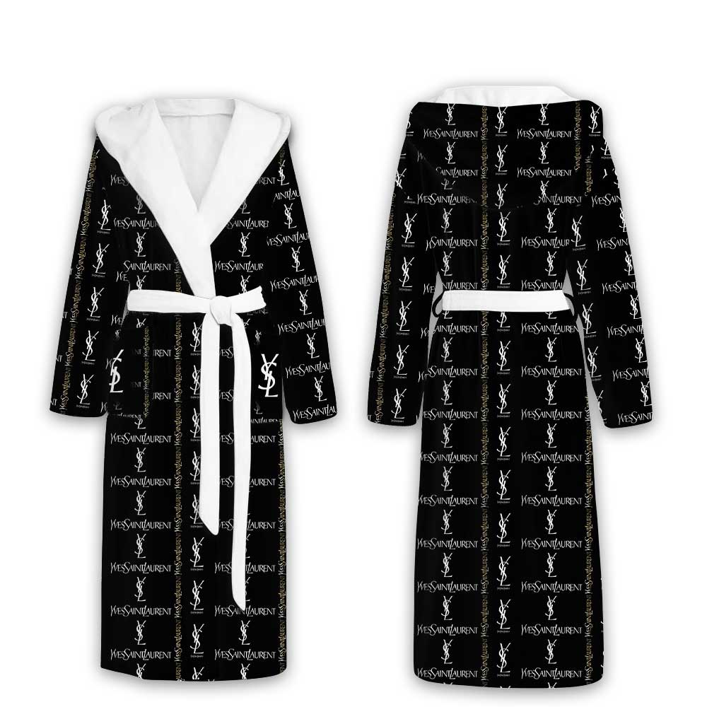 Yves Saint Laurent Gold Pattern Luxury Unisex Flannel Hooded Bathrobe