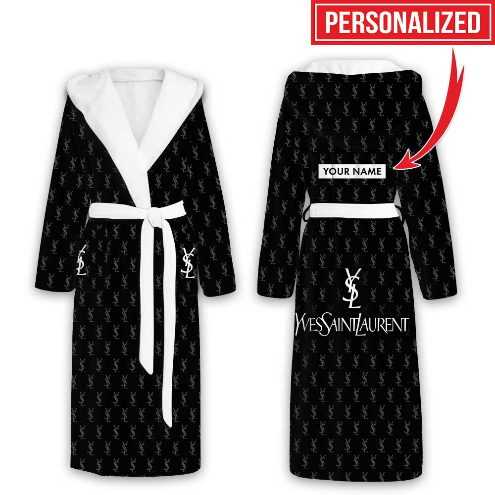 Yves Saint Laurent Logo Pattern Luxury Unisex Flannel Hooded Bathrobe